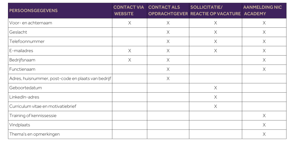 Voor het verlenen van onze diensten maken wij gebruik van persoonsgegevens in onze goed beveiligde database. Deze gegevens nemen wij op indien u ons uw gegevens, curriculum vitae en/of uw motivatiebrief verstrekt. U geeft dan direct expliciet toestemming dat wij uw gegevens in ons systeem mogen verwerken voor onze dienstverlening.
